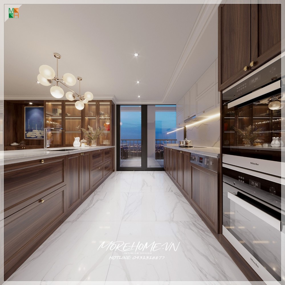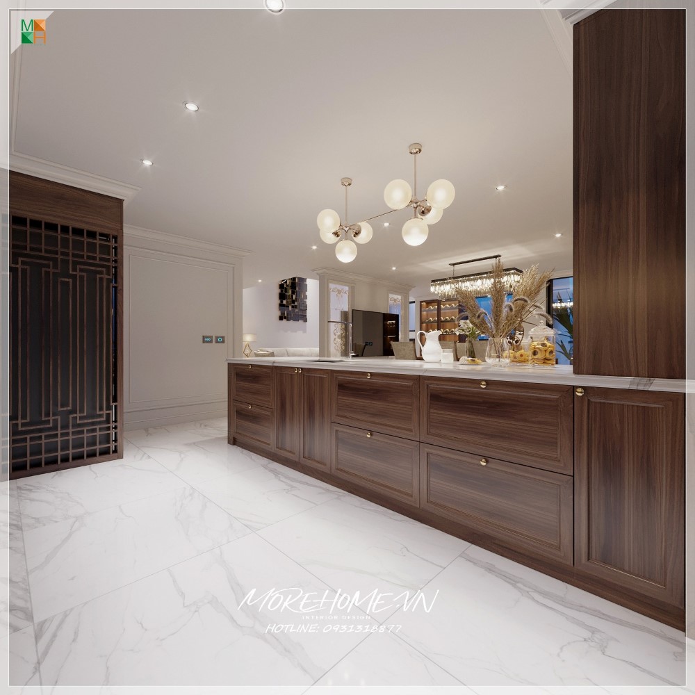 Thiết kế phòng bếp nơi nấu lên những món ăn ngon bổ dưỡng dành cho gia đình nội thất sắp xếp phù hợp hỗ trợ tốt cho quá trình sử dụng.