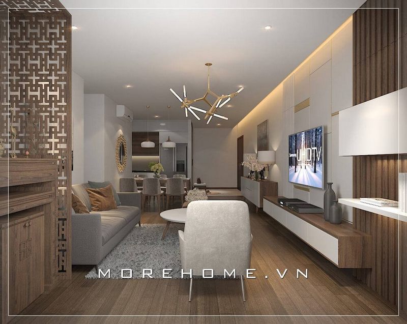 Mẫu sofa được thiết kế theo phong cách hiện đại trẻ trung với vỏ bọc vải tiện lợi cùng màu xám sang trọng là điểm nhấn ấn tượng của phòng khách chung cư.