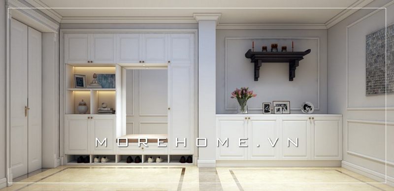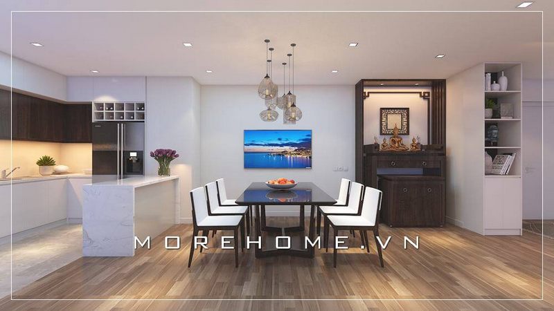 Mẫu bàn thờ chung cư cao cấp với kiểu dáng đơn giản, nhỏ gọn giúp tiết kiệm diện tích không gian căn phòng