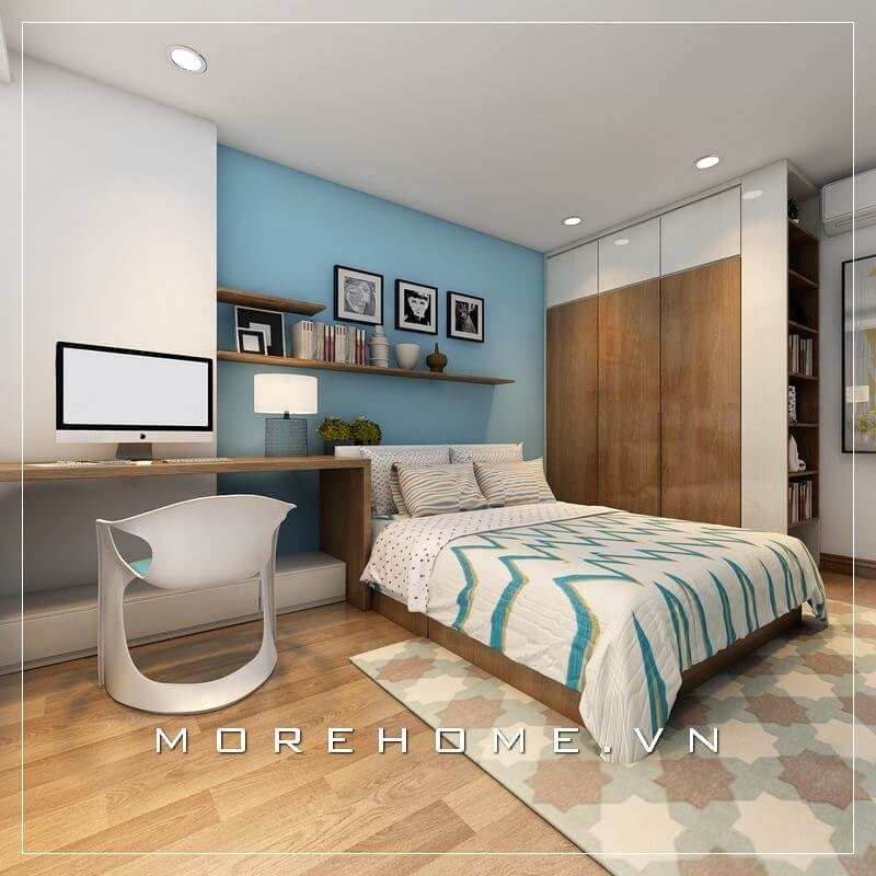Giường ngủ bé trai hiện đại, tab đầu giường nối liền tạo sự tiện dụng cho không gian thêm ngăn nắp, gọn gàng