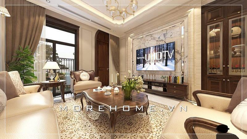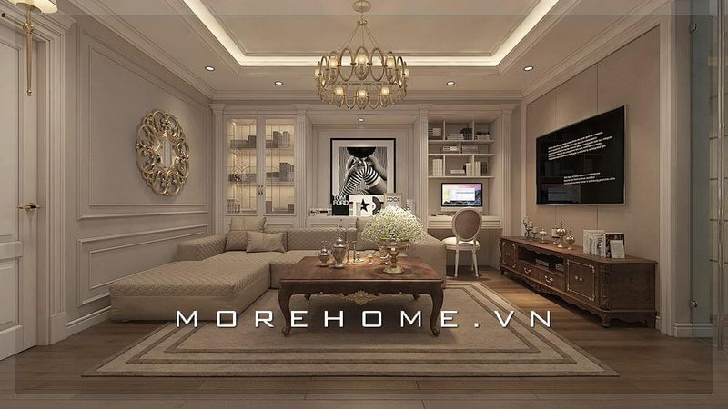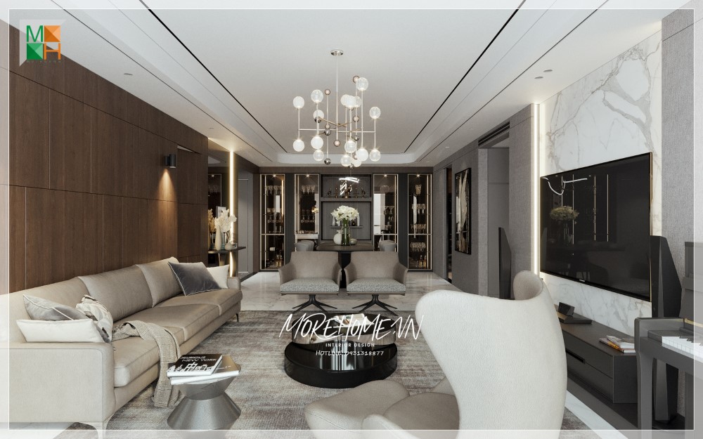 Bất ngờ với sự sang trọng và tinh tế trong không gian thiết kế phòng khách đẹp sang trọng của đội ngũ KTS tại Morehome.