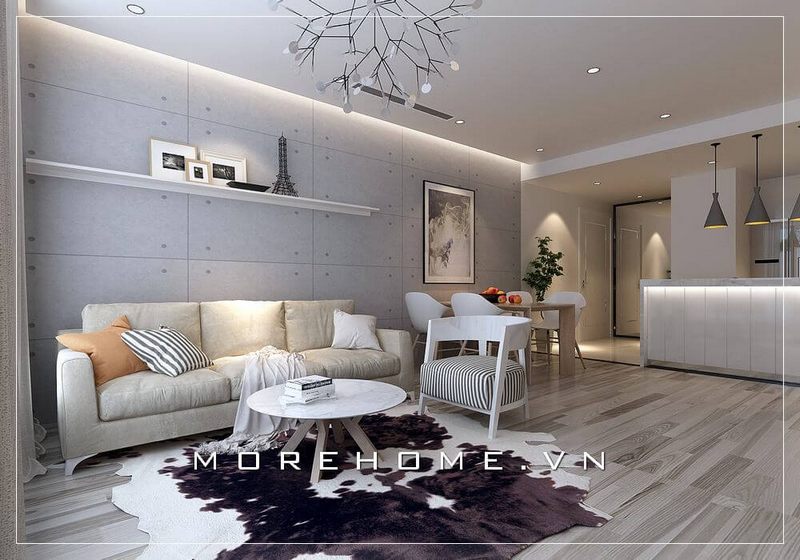 Thiết kế nội thất phòng khách hiện đại, đẹp và trẻ trung với tone màu trắng tinh tế cho nhà chung cư