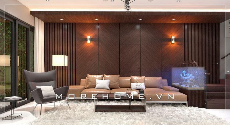 Ấn tượng với mẫu thiết kế phòng khách biệt thự gỗ óc chó hiện đại sang trọng tinh tế và đẳng cấp.