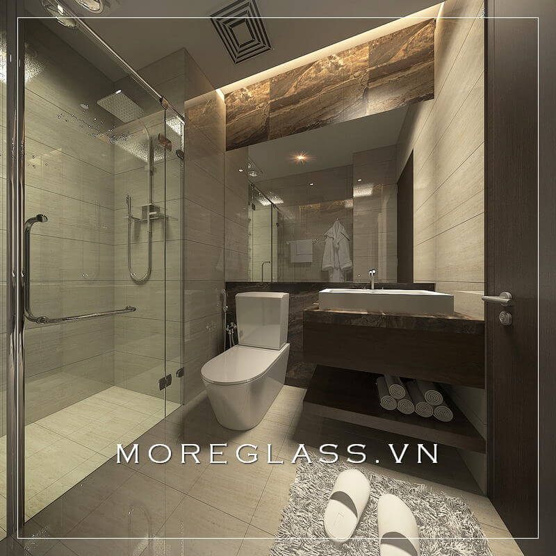 Mẫu phòng tắm kính cường lực hiện đại tạo điểm nhấn và ngăn nước vào nội thất