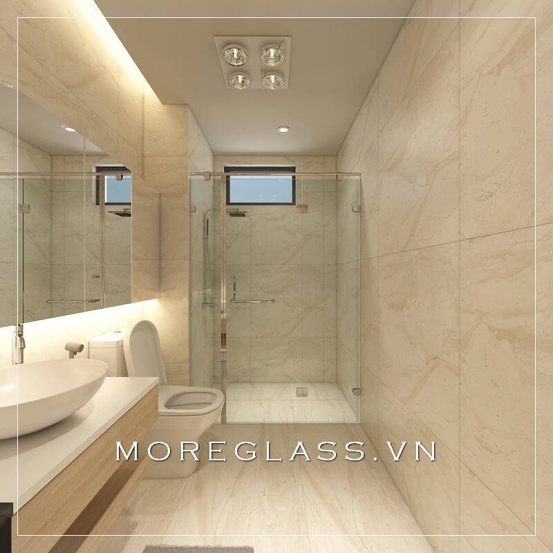 Vách kính cường lực là một sự tạo ra sáng tạo và ấn tượng của KTS, dùng để phân chia nhà tắm và WC.