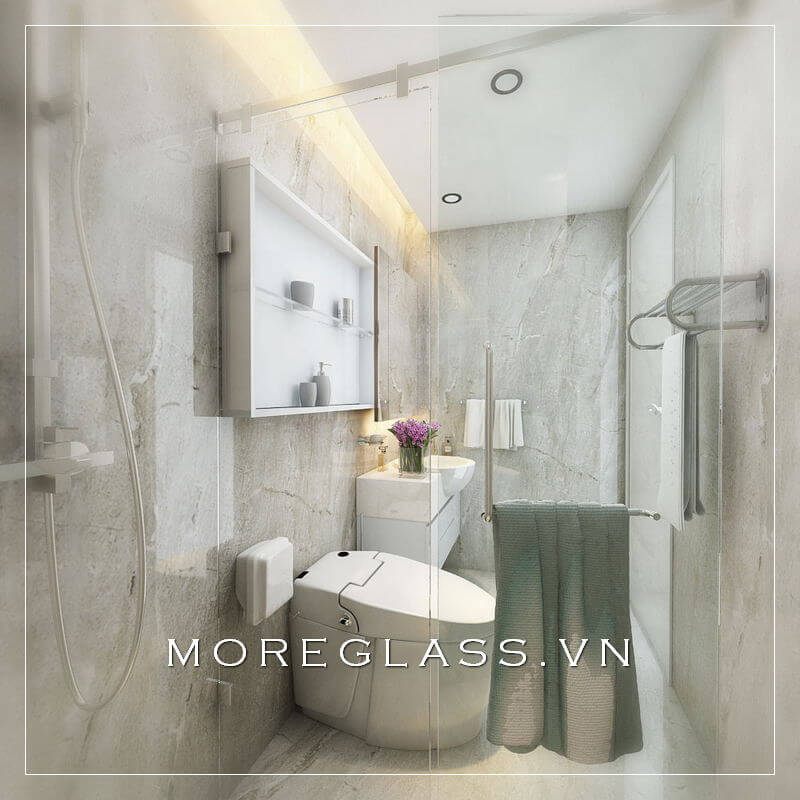 tắm nhỏ Mẫu thiết kế nhà tắm nhỏ này được trang bị phòng tắm kính đẹp, có cách sắp xếp nội thất, thiết bị vệ sinh hợp lí giúp tạo ra không gian thông thoáng cho căn phòng tắm nhỏ.